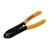 Alicate para terminales aislados. Perfecto para cortar alambres de cobre y aluminio, debido a su hoja afilada y fuerte cizalladura. Es adecuado para las uniones de todos los terminales fríos. Diseñado con orificios para tornillos para cortar alambres de cobre y latón. Pelado de cables: el diámetro de apertura de pelado preciso no cortara los núcleos de los cables y cumplirá con el uso bisic con su amplia gama AWG. La dureza del acero al carbono es de hasta HRC55. Fabricado en acero de 3,00mm de espesor, dureza HRA 60-8, recubrimiento epoxi tratado térmicamente.